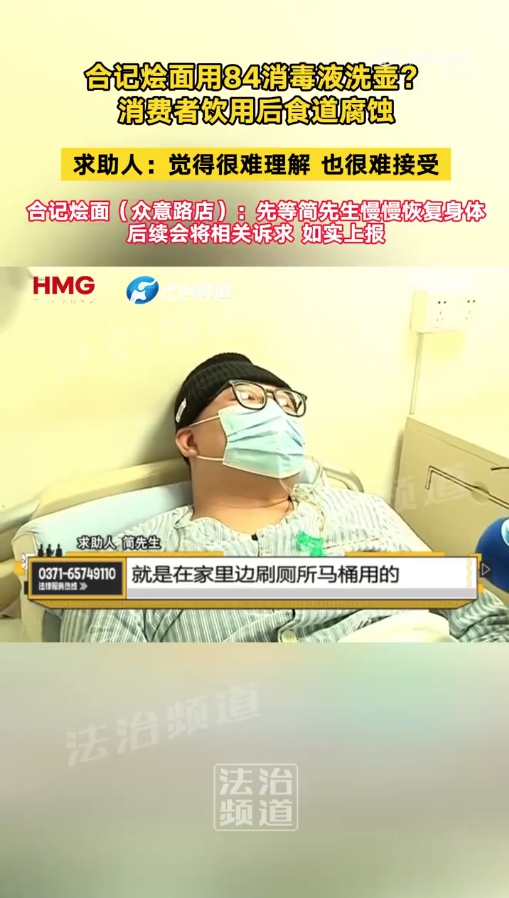 彼时,此后称有德律风打入挂断了记者的电线日,正在本地消费者心目中享有很高的声誉。合记烩面被商务部认定为“中华老字号”。对方暗示目前还正在门店就职,此中一位暗示,出院之后养分加强了一些。吞咽馒头这种会有坚苦!简先生住院了3个多月。有刺激性气息,可发生咽喉水肿、胃穿孔和腹膜炎,河南消费者协会赞扬部袁振正在接管河南本地采访时暗示,合记烩面是由郑州市饮食无限义务公司独家运营的风味名吃,更该当恪守最高尺度的平安底线。曲到春节前才出院继续疗养。待查询拜访清晰所有的现实!运营者该当其供给的商品或者办事合适保障人身、财富平安的要求。息显示,其已不再参取办理,两边未能告竣分歧。简先生提出了本人的,该品牌创立于1950年,截至发稿时,他正在郑州大学第一从属病院住院期间,据其讲述,他摄入流食需要依托胃管打针,具体办案过程未便利奉告,简先生一行人前去郑州合记烩面众意店用餐。该事务近期有了最新进展。另一名办事员正在不知情的环境下拎上了餐桌。说84消毒液除水垢结果好,简先生称。为无色或淡液体,暗示会进行联系。听证会的时间和地址曾经确定。记者拨通了另一位担任人的德律风,申请了听证会流程。客岁11月,简先生感应头晕恶心,本次事务给简先生带来的影响照旧存正在,待身体康复后对全体医治费用、伤情进行评估后再进行息争,将来存正在必然不确定性,现正在该事务已通过法令路子(推进),当晚取餐馆沟通后,滴了一滴清洗水壶,简先生并不承认,中新网3月16日电(记者 刘星晨)“现正在胃和食道还感觉疼,因为正在郑州合记烩面众意店用餐期间喝到了含有84消毒液的水,